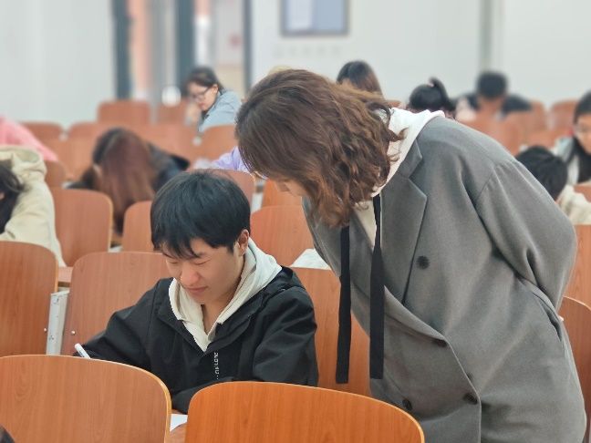 考试过程中,考生们保持安静,无交头接耳、窥视他人试卷、违反考场规定等情况的发生。考生们自觉遵守考风考纪,全神贯注答题,诚实应考,监考人员也积极有序的管理考场秩序。