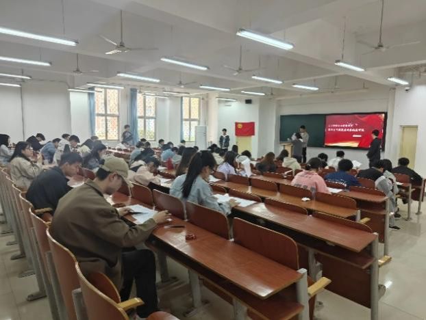 考试开始之前,积极分子们在监考员的引导下有序入座,准备好考试所需用品。随后监考员们强调考试纪律和禁止行为,要求学员们诚信考试、端正考风、严肃考纪、细心审题、认真答题。本次结业考试以闭卷的方式进行,包括选择题,填空题,判断题,简答题,论述题五种题型,考试范围主要为《中国共产主义青年团章程》、二十大、两会等基本知识,全面考察学员对基本知识的掌握情况。