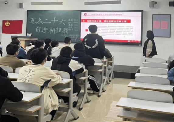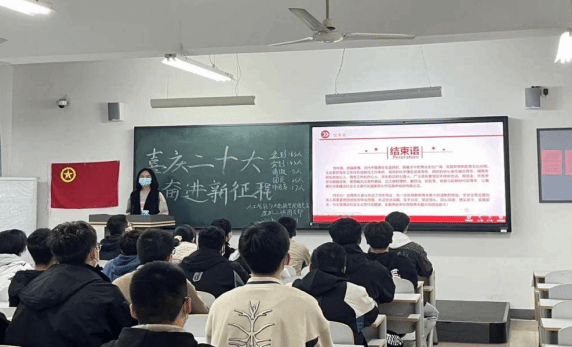 伴随着激情高昂的团歌,“喜庆二十大,奋进新征程”主题团课正式拉开帷幕,此次团课由各班团支书主持并主讲,各班团委辅助进行。首先,各班团支书带领员工了解有关“党的二十大报告”的具体内容,阐述了“党在新征程上仍高举中国特色社会主义伟大旗帜、坚定不移走社会主义道路,为全面建设社会主义现代化国家而团结奋斗”的伟大坚守。而后,通过放映学习党的二十大会议相关视频内容,使青年员工更加深刻体会到了百年大党信仰如山、初心如磐的执着与坚定。最后,各班团支书向本班员工讲解此次党的二十大会议主题,倡导青年员工高举中国特色社会主义伟大旗帜,全面贯彻习近平新时代中国特色社会主义思想,自信自强、守正创新,踔厉奋发、勇毅前行。