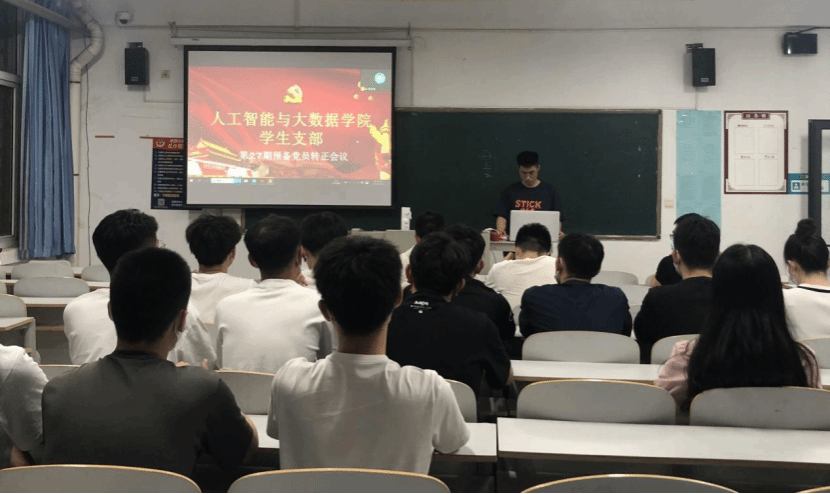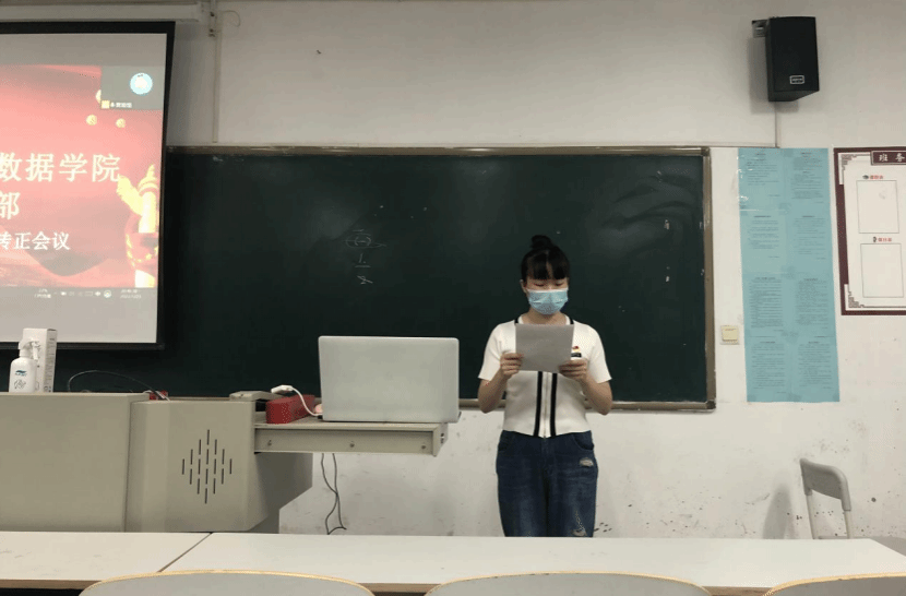 会议开始,杨老师介绍大会各项事宜以及大会流程。首先由杨老师宣读本次会议的预备党员转正的人员名单,预备党员相继宣读转正申请书,汇报预备期中自己在思想、生活、工作等各方面的情况。随后由党员对预备党员平时表现进行讨论,评议其是否具备转为正式党员的资格条件。本次支部大会按照流程有条不紊的进行着,经过投票表决,26名预备党员均全票通过党员决议,成为中共正式党员。最后党总支书记尹钧向各位转正的党员给予肯定和表示祝贺。