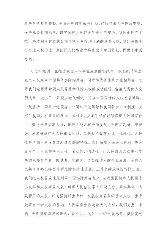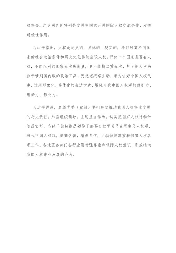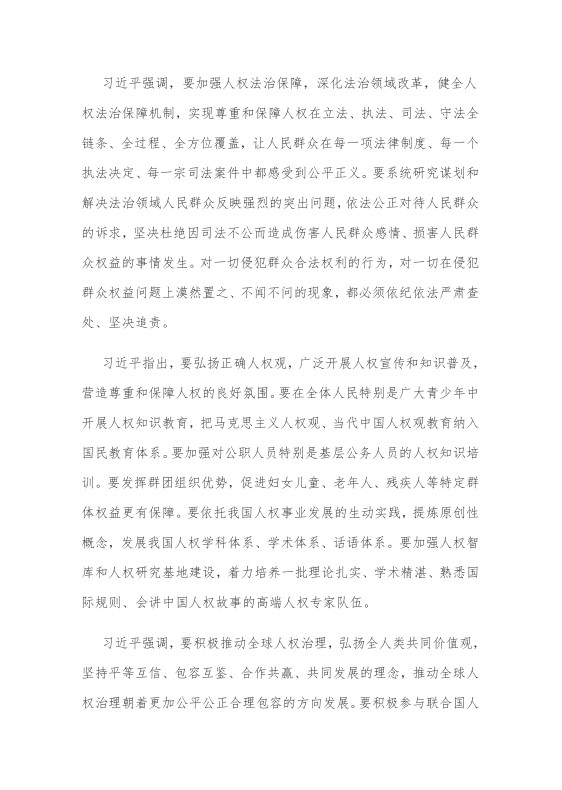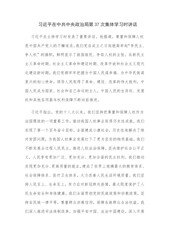 习近平在主持学习时发表了重要讲话。他强调,尊重和保障人权是中国共产党人的不懈追求。