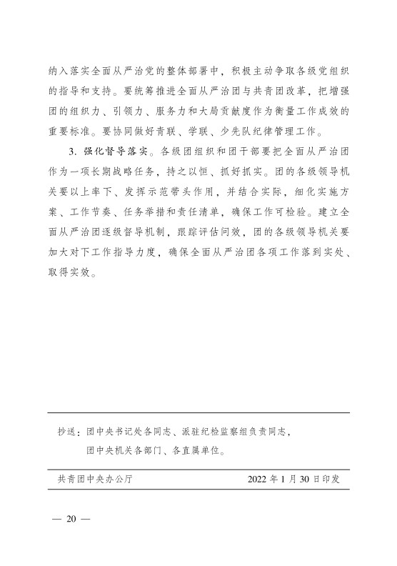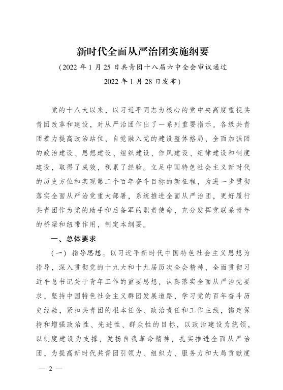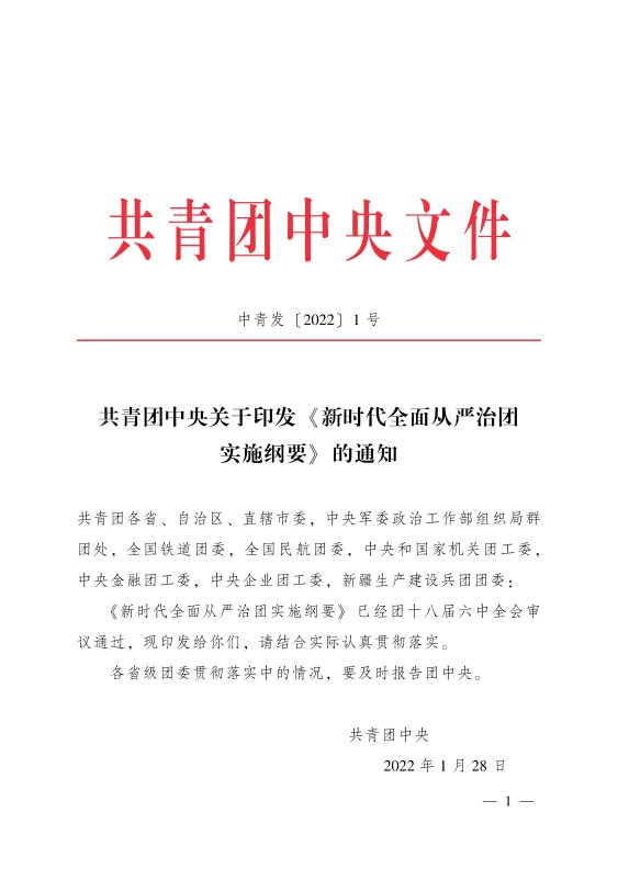 共青团中央关于印发 《新时代全面从严治团实施纲要》 的通知
