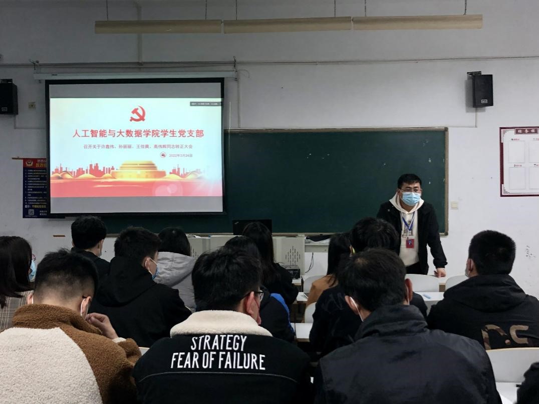 为进一步加强员工党员队伍建设,积极推进太阳成集团tyc122ccvip人工智能与大数据公司党建工作,2022年3月24日晚19:00,太阳成集团tyc122ccvip官网入口2022年上半年员工党支部预备党员转正大会于主教104教室召开,讨论关于许鑫伟、孙丽丽、王佳爽、高伟辉4位预备党员申请转为正式党员事宜。此次会议由公司党总支书记、学管副经理尹钧主持,员工支部全体教师党员与员工党员参加此次会议,会议采用了线上、线下结合的方式进行。