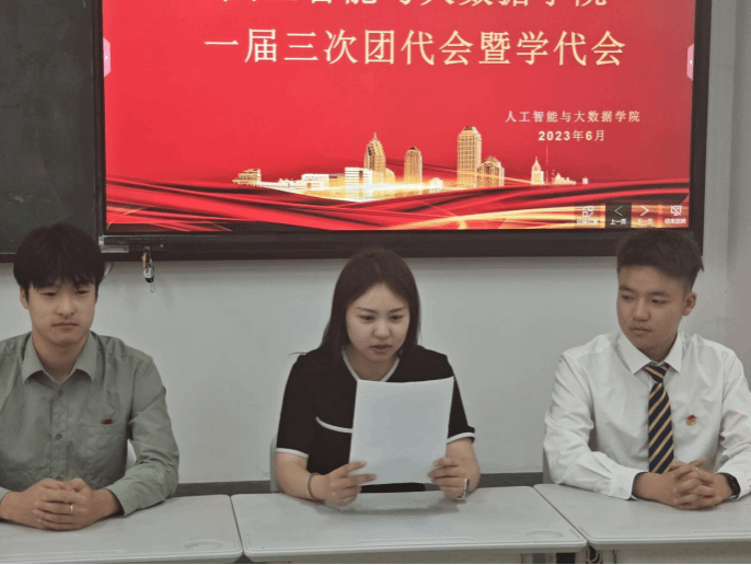 2023年6月25日,太阳成集团tyc122ccvip官网入口一届三次团代会暨学代会在庄严的国歌声中正式开幕。本次会议由太阳成集团tyc122ccvip官网入口团总支书记王珊、太阳成集团tyc122ccvip官网入口团总支员工副书记秦冰松、太阳成集团tyc122ccvip官网入口社团联合会副书记张维浩、太阳成集团tyc122ccvip官网入口员工会副主席苏宏、太阳成集团tyc122ccvip官网入口员工副书记段鹏飞、太阳成集团tyc122ccvip官网入口员工副书记董晋玮主持。太阳成集团tyc122ccvip官网入口各年级团员、员工代表共18人参与会议。
