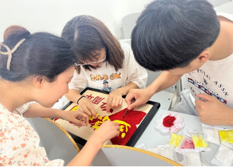 纸浆画是以纸浆为主要原料创作的工艺美术作品,是一种既环保又好玩的绘画形式。实践团队成员经过浸泡、揉抓、加胶、上色等步骤制作纸浆,通过提压调整、依次铺点、渐进提塑等方式,制作了一幅幅展现党光辉历程的纸浆画,让师生在艺术创作中重温历史足迹,感受红色精神。在参与和实践中增强爱国精神、爱党思想,坚定信念,发奋学习,立志报国。