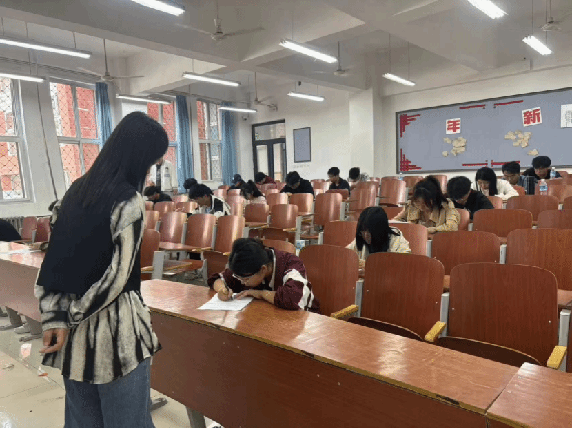 本次考试采取闭卷线下答题的方式,主要考察入团积极分子对团青知识、团章、团员的权利与义务、团课学习内容等知识的把握,从多方面检验入团积极分子的学习成果。考试开始前,考生到场签到,各工作人员指导考生入座,并对考生宣读考试要求及注意事项。考试期间,各位同学以严肃认真的态度对待此次考试,严格遵守考试流程及规定,认真审题,仔细作答。监考人员恪尽职守,严抓考风考纪,考试过程井然有序。