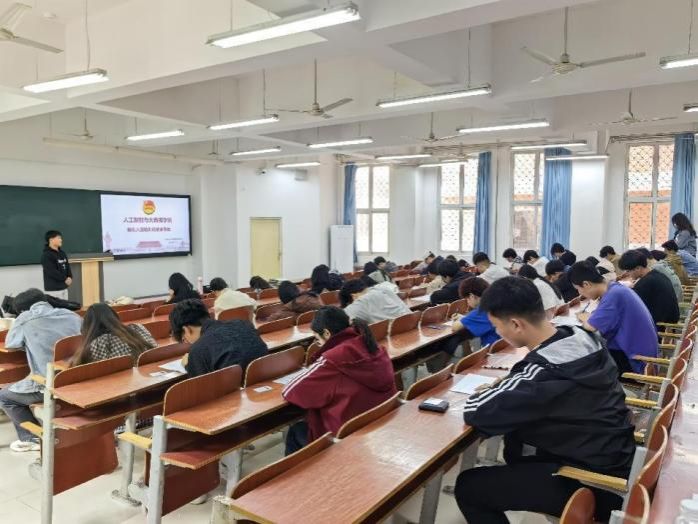 此次考试旨在提升员工们的思想政治素养和综合水平,巩固员工们对团课学习成果。考试前夕,入团积极分子们认真准备,以饱满的精神风貌以及严谨的态度来应对此次考试。考试时,监考人员从严把控考场秩序,严肃考风考纪,确保考试的公平公正;入团积极分子们从容不迫、专注答题,整个考场井然有序。