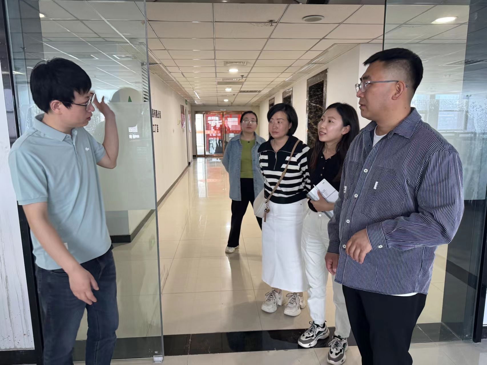 为了进一步了解企业用人需求,深化校企合作,为毕业生拓宽就业渠道,搭建更广阔的就业平台。人工智能与大数据公司党总支书记、学管副经理尹钧,院人才招聘办公室主任潘亚静,辅导员刘晓玲、杨思宇,专职教师马迎梅一行人于2024年4月17日前往河北航数科技有限公司,开展“访企拓岗”专项活动。