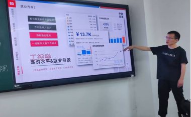 讲座现场,中企未来的人事经理围绕“离开校园,开启职业”展开深入讲解。凭借丰富的行业经验和专业知识,他以生动形象的方式阐述了人工智能,大数据等专业在职业选择于就业前景上的优势,并结合实际案例剖析当下行业的发展现状与未来趋势,使抽象的概念变得通俗易懂,让在场师生对相关领域有了更为直观且深刻的认识。例如,在讲解就业方向时,他列举了工控类在中企未来中的薪资水平和就业前景,详细分析了其中的好处与历年工资变化趋势,为员工们提供了宝贵的经验参考。