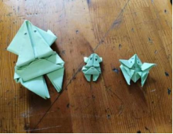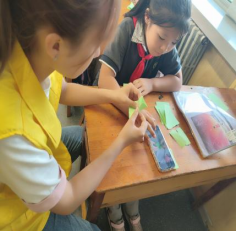 本期“垃圾分类,变废为宝”手工小课堂的教学内容是“手工青蛙”。志愿者老师认真细致地讲解手工折纸的由来及制作方法,给大家演示并讲解了基础折纸的方式和技巧,及如何运用不同的方法做成长方形、正方形、菱形、三角形等不同图形等。参与困难的小朋友在志愿者的协助下,一步步跟着讲解进行折叠,慢慢地从最初的生疏到熟练,充分发挥着自己的动手能力,将正正方方的七彩纸对边折、对角折、四角向中心折,一步步折叠起来,通过折叠,将一张平面的纸变成一个立体的青蛙,很快一个个“活蹦乱跳的青蛙"作品就制作完成了。大家开心地向身旁的伙伴们展示成果,还兴奋的要比赛看看谁的青蛙跳的远,每个人脸上都洋溢着兴奋。