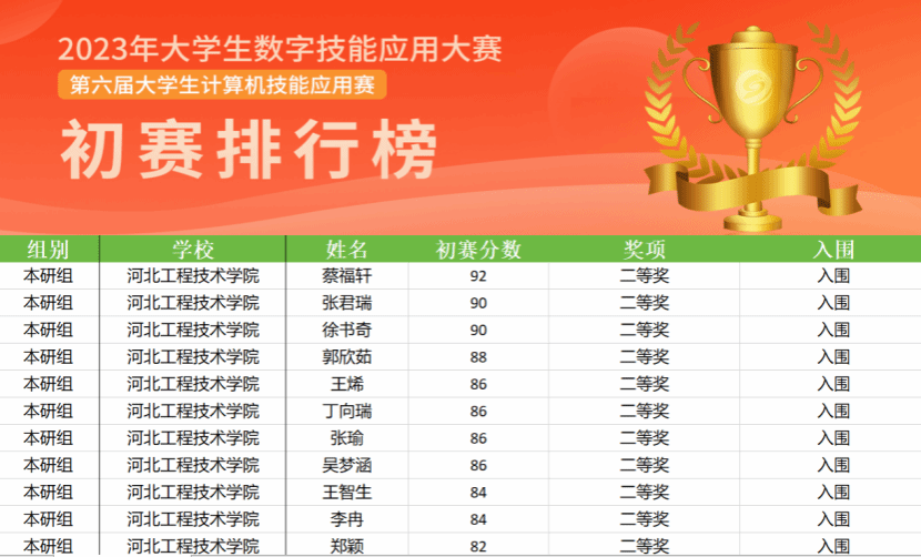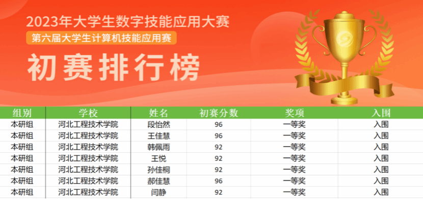 本次比赛分为程序设计和办公软件两个赛道,公司在全国本研组预赛中共获得7个一等奖、24个二等奖、29个三等奖,同比去年1个一等奖、7个二等奖再创历史新高。其中公司段怡然、王佳慧、韩佩雨、王悦、孙佳桐、郝佳慧、闫静7名同学披荆斩棘获得大赛本研组一等奖;蔡福轩、张君瑞、徐书奇、郭欣茹、王烯、丁向瑞、张瑜、吴梦涵、王智生、李冉、郑颖等24人获得大赛本研组二等奖。