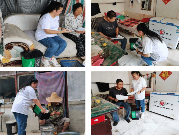 通过入户调查和利用调查问卷的形式了解村民对于垃圾分类工作的认可度和执行力,并且用通俗易懂的语言向村民讲解了垃圾分类的意义、如何分类以及垃圾分类标准这三个方面内容,又着重介绍了容易错分的种类,引导村民对垃圾进行准确分类,引导村民参与到垃圾分类当中,共享环保低碳生活。