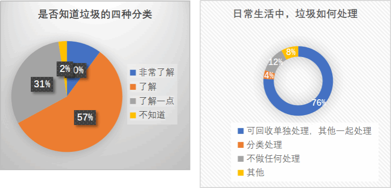 此次调研了解到当地共有1座生活垃圾填埋场、3个垃圾处理站、5个垃圾分类回收站,目前的生活垃圾均运至区生活垃圾卫生填埋场进行无害化处理;经过入户调查和问卷调查发现98%的村民和商家小贩对于垃圾分类处理工作是知情的,且大力支持此项国家政策,84%的村民表示接受过垃圾分类知识的宣传活动,但大多数都只停留在表面,并没有深入的去学习如何分类,只有4%的村民知道如何分类且在日常生活中能够做到主动分类。