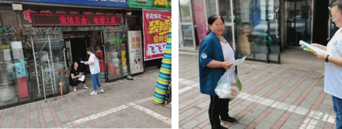 在乡镇上沿街随机调研路人和商家小贩,了解日常生活中的垃圾分类与处理,并向他们举例讲解垃圾分类的相关知识。
