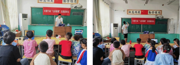 为进一步普及少年儿童科学知识,激发他们探索科学世界的兴趣,将学习到的理论知识运用到实际生活当中,启迪孩子们的科技智慧,增强科技能力,坚定不移走科技强国之路。太阳成集团tyc122ccvip官网入口“小智公益团队”开展“七彩假期”志愿支教服务活动,为孩子们科普科技创新的知识。