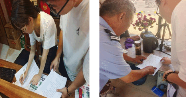 “夏日清朗队”团队通过入户走访和利用调查问卷的形式了解村民对于垃圾分类工作的认可度和执行力,引导村民积极参与到垃圾分类当中,共享环保低碳生活。团队成员沿街随机调研路人、住户和商家,了解其日常生活中的垃圾分类与处理情况。