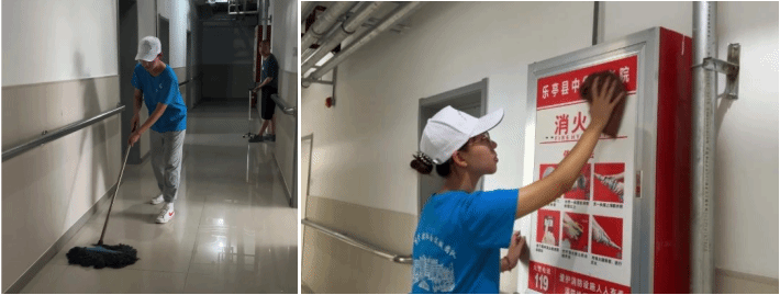 在本次志愿服务活动中,实践团一共进行了四项内容,分别是:帮助老人测量血压、走进敬老院、菜市场服务和打扫卫生。