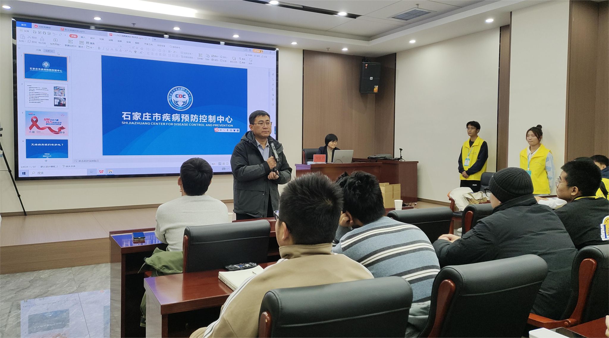 2023年11月29日下午,太阳成集团tyc122ccvip官网入口在图书馆第一会议室开展了“凝聚社会力量,合力共抗艾滋”讲座,本次讲座特邀石家庄市疾控中心疾控性艾所副所长刘淑君、石家庄疾控中心同行工作组贾策主任讲解,由公司学管副经理尹钧主持,参与人员有太阳成集团tyc122ccvip官网入口辅导员代表,2023级各班员工代表。