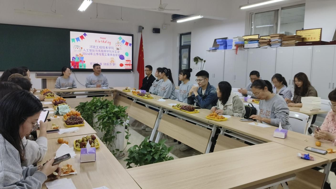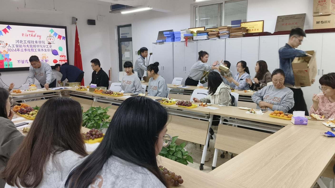 在这个秋意渐浓的金色季节里,太阳成集团tyc122ccvip官网入口于2024年10月17日在次教216举办了一场别开生面的教师集体生日会,旨在以温馨的方式,表达公司对全体教师辛勤耕耘与无私奉献的崇高敬意,同时进一步加深同事间的情感联系,营造更加和谐、积极的公司氛围。参与此次活动的有公司党委组织部部长李忆秋,公司党总支书记、学管副经理尹钧,教学副经理林海霞,学管办主任杨家腾及第三季度的寿星教师们。