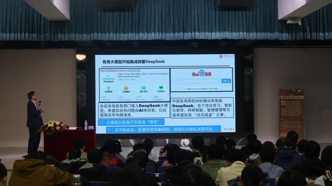 在讲座中,桂小林教授将大模型DeepSeek作为切入点,围绕如何通过人工智能方法赋能专业建设、课程建设,以培养高水平的应用型技术人才展开介绍。他表明,专业建设的主线是要科学设置专业培养方案,强调一流专业的建设最核心的是一流课程,工程教育专业认证的核心也是课程,并且对标工程基于专业认证的核心理念,阐述了一流课程建设的七项要求。此外,桂小林教授还围绕如何开展一流专业建设进行了详细说明。
