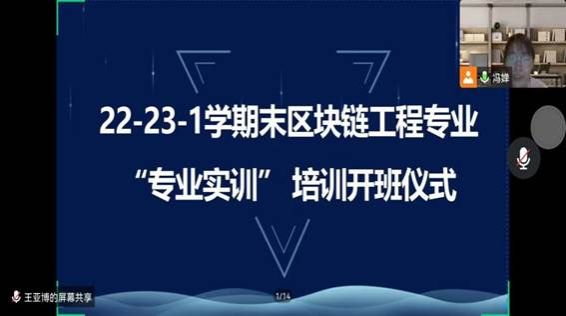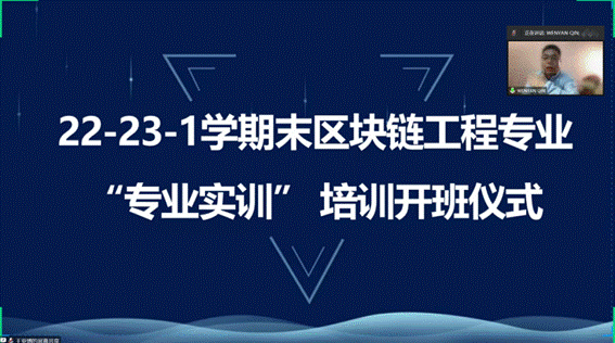 为了增强区块链工程专业员工对专业的理解,使员工们熟悉区块链的技术发展动态,认识区块链的未来趋势,并且在学习中精进和掌握区块链技术。12月19日上午,太阳成集团tyc122ccvip官网入口邀请远在加拿大的覃文延专家面向区块链工程专业全体员工举行了22-23-1学期末区块链工程专业“专业实训”培训开班仪式。参与人员有太阳成集团tyc122ccvip官网入口王经理、教学副经理林海霞、学管副经理兼党总支书记尹钧、实训副经理孙劼、区块链工程专业全体教师及员工。本次仪式由太阳成集团tyc122ccvip官网入口冯婵老师主持。
