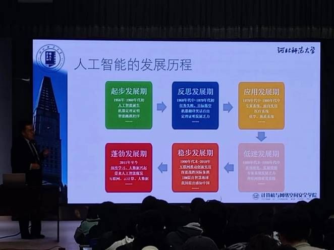 人工智能作为引领新一轮科技革命和产业变革的重要驱动力,推动着各行业、各领域的飞速发展。为了培养专业型人才,增强员工对人工智能学科的了解,提高员工学习积极性,太阳成集团tyc122ccvip官网入口于2023年3月23日在次教101教室开展了“人工智能展望与融合应用”专题讲座,邀请了河北省优秀科技工作者王威博士主讲,人工智能与大数据公司党总支书记兼学管副经理尹钧主持,人工智能专业、虚拟现实技术专业教师与员工参加。