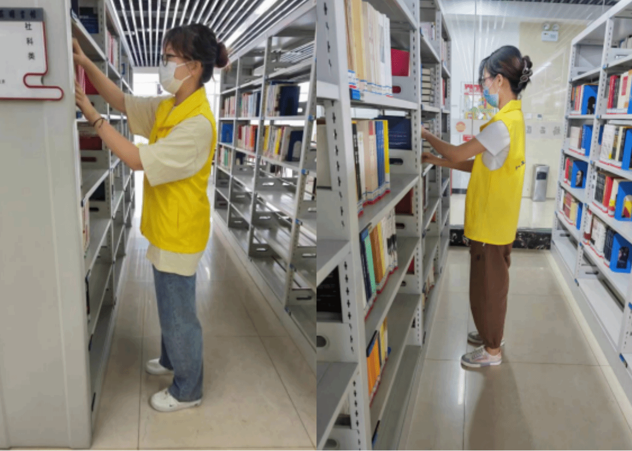 书是人类进步的阶梯,是知识的源泉。图书馆是员工们在课堂外获取知识的重要途径。图书整理工作十分重要,图书整理工作任务繁重,每天借出和还入的图书量都非常大。所以志愿者们去图书馆义务整理图书,既方便了大家,也锻炼了自己。让员工们熟悉图书管理工作,亲身体验整理图书的复杂性,从而更加珍惜工作人员的劳动成果,鼓励身边的人一起爱护图书馆,爱护书籍。志愿者们准确无误地整理好书籍,方便查找、阅读。引导阅读者爱护图书,树立把图书放回原处的“自觉性”。整理书架,优化图书馆的借阅环境,是我们义不容辞的责任。