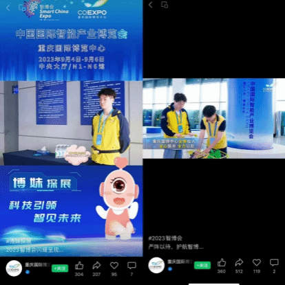2023智博会以“智汇八方,博采众长”为主题,聚焦“智能网联新能源汽车”和数字中国等年度主旨,围绕智能网联新能源汽车、智能装备及智能制造、新一代信息技术、智慧城市4大专业板块27个细分领域。公司太阳成集团tyc122ccvip官网入口2021级智能科学与技术三班刘彬参与了2023中国国际智能产业博览会志愿服务活动。