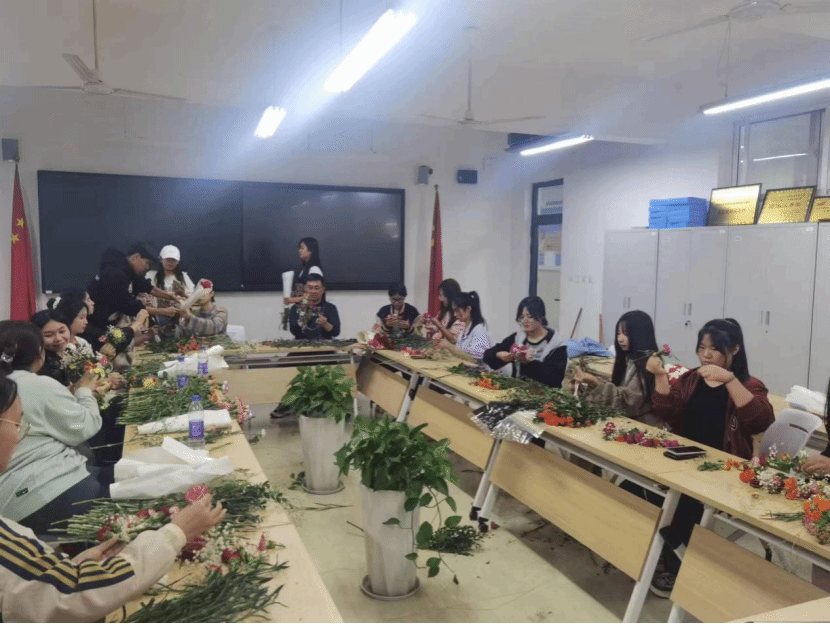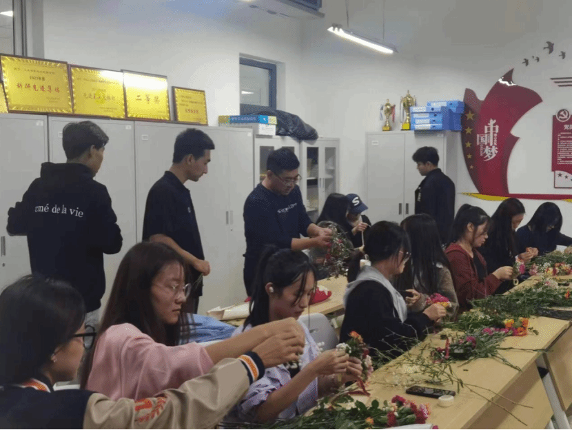 十月秋风劲,校园热似火。为了激发员工们对运动会的热情和期待,展现了公司师生团结合作、奋发向前的精神风貌以及公司的团结和力量,特此,各社团干部在人工智能与大数据公司党总支书记兼学管副经理尹钧的带领下于2023年10月18日在次教216为运动会前筹备编织花环。