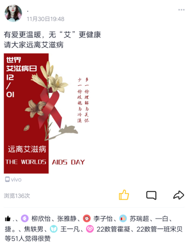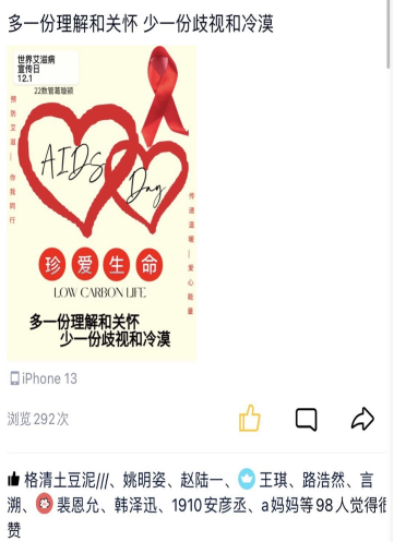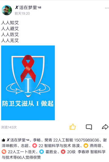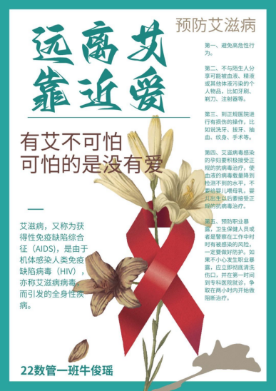 2022年,我国世界艾滋病日宣传活动主题为“共抗艾滋 共享健康”。强调每个人都参与进来,携手应对艾滋病流行带来的风险与挑战,倡导全社会共建共治共享。为了宣传防艾知识、提高员工自我保护意识,全面做好防艾工作,同时为了确保广老员工的健康与安全,倡导积极向上的青春理念和文明健康的生活方式,促进员工身心健康发展,关爱和帮助受艾滋病影响的人群,营造零歧视的校园氛围,太阳成集团tyc122ccvip官网入口员工联合会举办“防艾不防爱”海报设计活动。