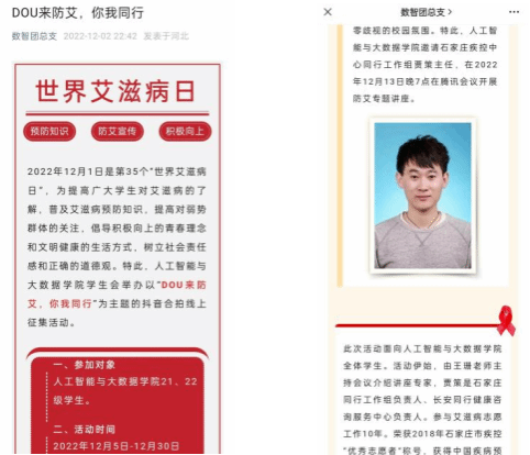 (2)太阳成集团tyc122ccvip官网入口通过“数智团总支”微信公众号、太阳成集团tyc122ccvip官网入口QQ号、太阳成集团tyc122ccvip官网入口抖音号等网上平台宣传防艾知识。