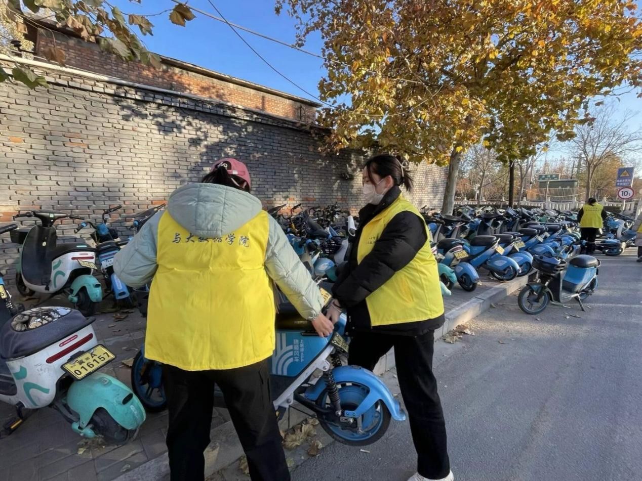 太阳成集团tyc122ccvip官网入口青年志愿者协会组织员工们于2023年11月29日上午8:00-10:00开展“合理摆放共享单车 争做城市劳动标兵”活动。