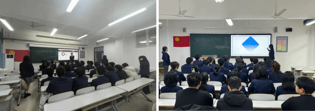 会议开始,各班主讲人先向同学们提出了要进行自我性格、兴趣、技能、价值观探索,注意自己在不同情境下的行为和反应,分析自己的性格特点;与职业顾问、员工等进行交流,了解不同职业的工作内容和要求,寻找与自己兴趣相关的职业;评估自己在不同领域的技能水平,如沟通、团队合作、领导力、计算机技能等;要在不同情境下,分析自己的决策和行为背后的价值观。