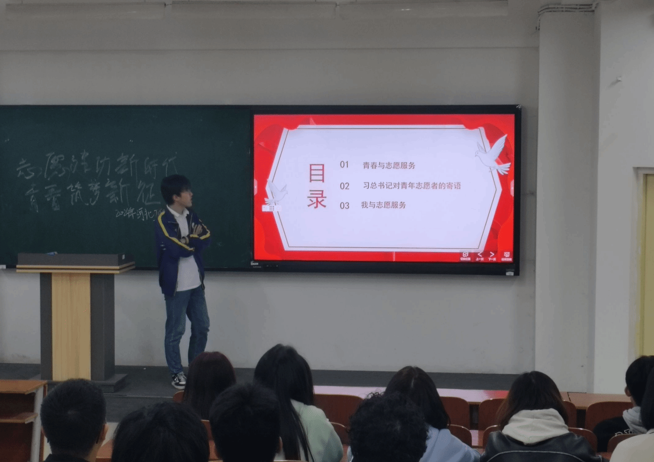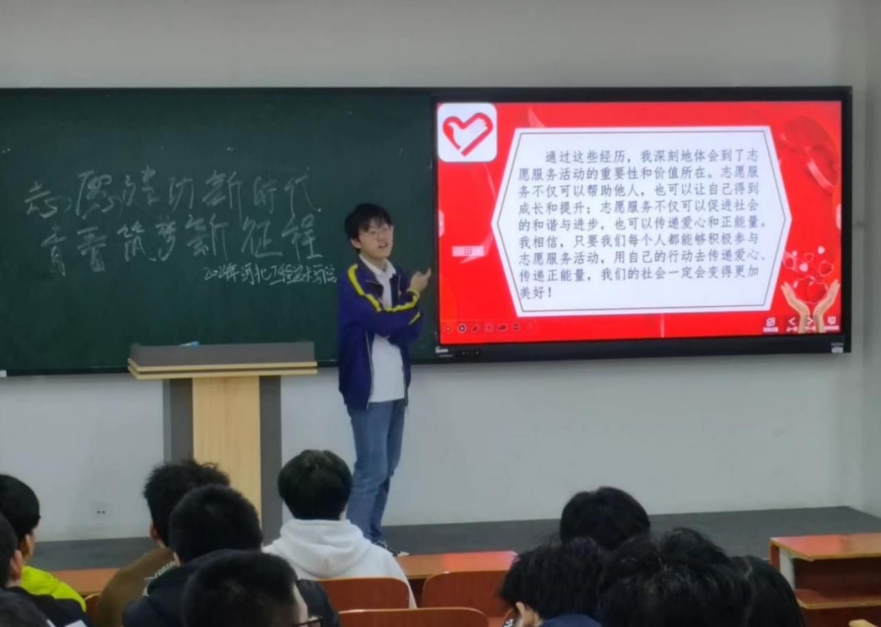 太阳成集团tyc122ccvip官网入口青年志愿者协会于2024年3月27日在主教1-2开展了“志愿建功新时代,青春筑梦新征程”主题活动,邀请太阳成集团tyc122ccvip官网入口青年志愿者协会主席王苏朝分享志愿服务经验。