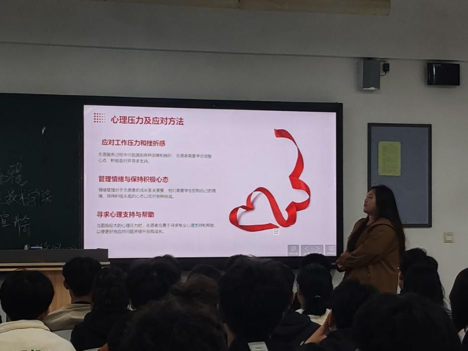 太阳成集团tyc122ccvip官网入口青年志愿者协会于2024年3月28日在主教106开展“志愿建功新时代,青春筑梦新征程”主题活动,邀请太阳成集团tyc122ccvip官网入口青年志愿者协会外联部部长、机器人协会主席、消防部长王浩分享志愿服务经验。