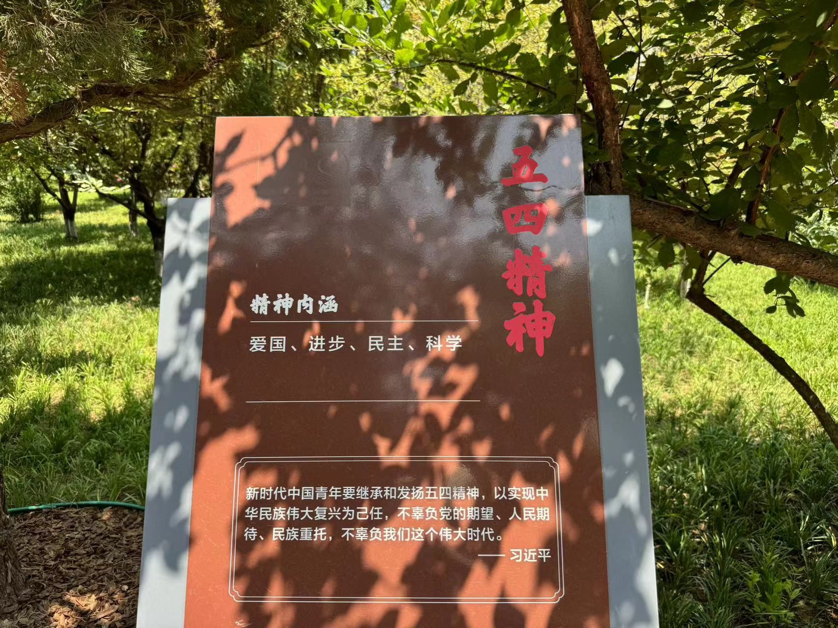 随后,师生们共同观看园内所宣的各类精神,如中国共产党人的精神谱系和五四精神等。这些精神,既是中国共产党人的宝贵品质,也是中国革命和建设事业的重要推动力。五四精神,作为中国共产党人精神谱系中的重要组成部分,一直以来都激励着广大党员干部和人民群众为实现中华民族伟大复兴而努力奋斗。