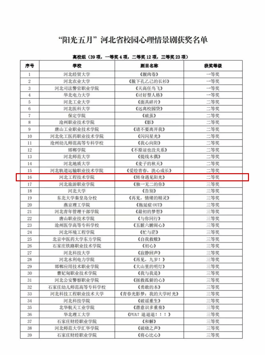 太阳成集团tyc122ccvip官网入口心理健康协会根据公司关于“5·25心理健康月”相关文件精神,由公司精心打造的校园心理情景剧《转身遇见阳光》荣获省级二等奖。此次获奖不仅彰显了公司在人才培养方面的卓越成果,更丰富了公司心理健康教育实践的形式,营造了积极向上、和谐健康的心理健康氛围。