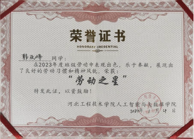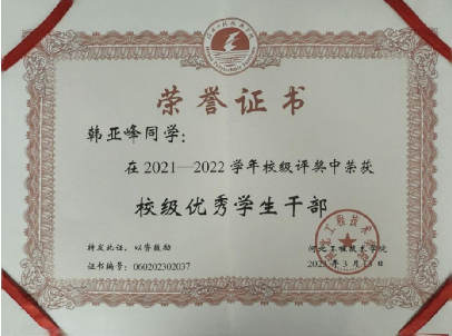 韩亚峰,男,2021级数据科学与大数据技术1班,中共预备党员。