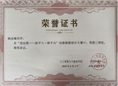 2023-2024学年获得“劳动美—致平凡·致不凡”创意海报设计三等奖