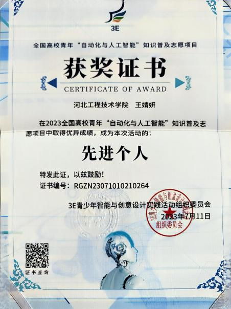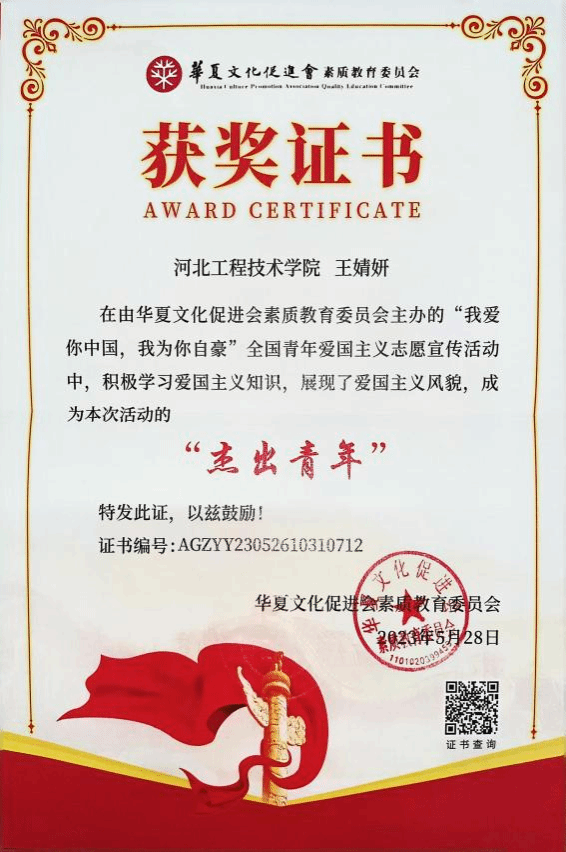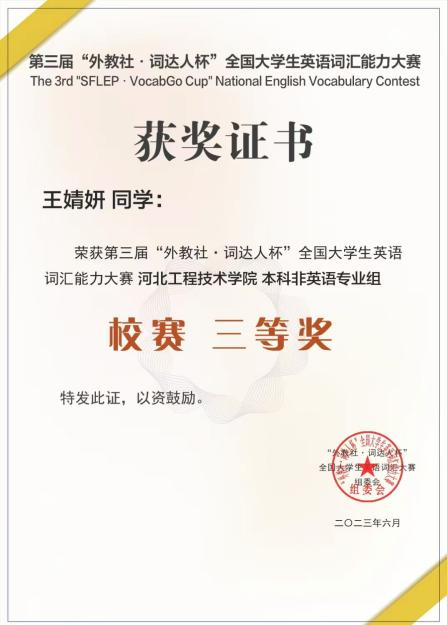 2023年荣获“外教社·词达人杯”校赛三等奖。