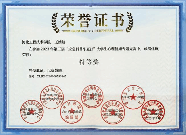 2023年荣获老员工心理健康专题竞赛特等奖。
