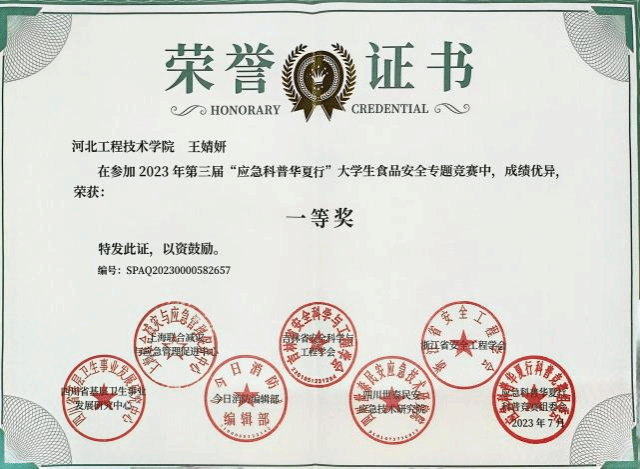 2023年荣获老员工食品安全专题竞赛一等奖。