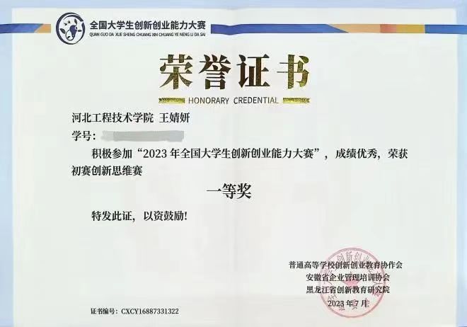 2023年荣获全国老员工创新创业能力大赛一等奖。