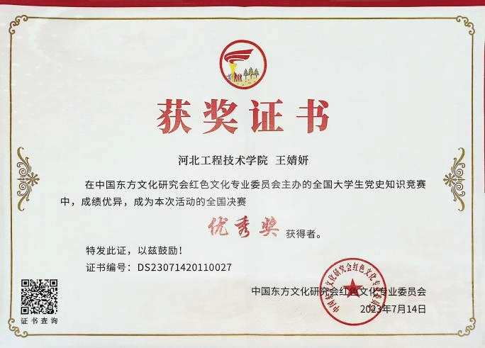 2023年荣获全国老员工党史知识竞赛优秀奖。