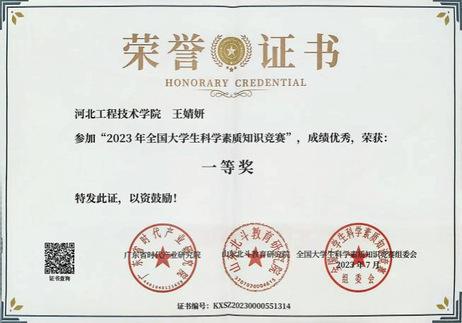 2023年荣获全国老员工科学素质知识竞赛一等奖。