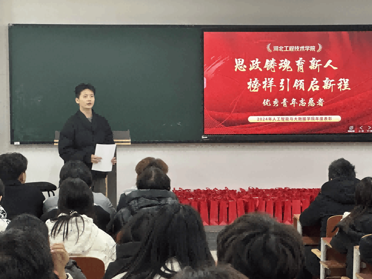 随后,林长昊宣读了受表彰的积极志愿者名单。这些志愿者们来自不同的班级和专业,但他们都怀着一颗热忱的心,积极投身于志愿服务事业。他们活跃在不同的公益岗位上,在红旗大街小学耐心辅导作业,助力小员工学业进步;在图书馆精心整理书籍、引导读者查找,让知识传递更加顺畅;在汇宁小学开展第二课堂,折纸、户外活动、科普小知识,拓宽孩子们的视野,点燃他们对未来的向往,用点滴行动诠释公益的力量。
