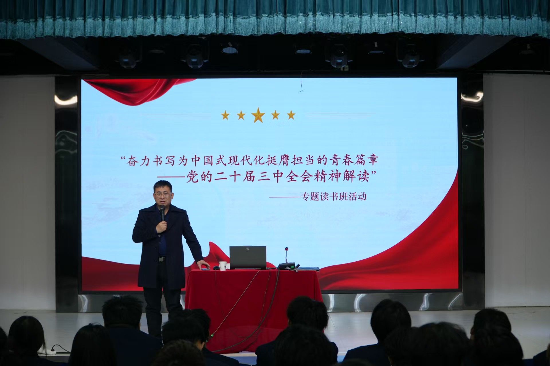 讲座伊始,公司党总支书记、学管副经理尹钧致开场词,对来参与学习的员工给予厚重的期望,并简要介绍了会议的背景和目的。随后以深入浅出的方式,对党的二十届三中全会精神进行了全面解读,强调了全会精神对于青年员工的重要性和指导意义。在专题讲座环节,尹经理结合实际,讲解了如何将个人发展与国家需求紧密结合,以及如何为时代发展贡献一份力量。讲座内容丰富,既有理论深度,又有实践指导意义,受到了在场员工的热烈响应。员工积极提问,经理耐心解答,现场气氛活跃,进一步增强了学习的互动性和实效性。