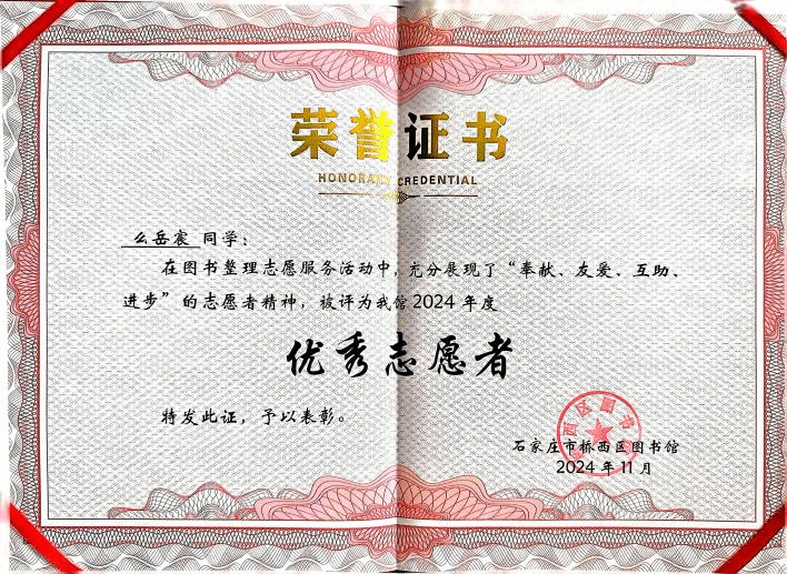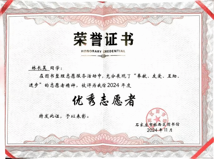 在简洁而庄重的仪式上,图书馆馆长发表了真挚的致辞,赞扬志愿者们的无私付出,称他们是图书馆不可或缺的助力,也是社区文化建设的积极因子。此次桥西区图书馆对公司青年志愿者代表颁发证书,不仅是对公司青年志愿者们公益行为的肯定和鼓励,更是对公司青年学子的一种激励和引领。