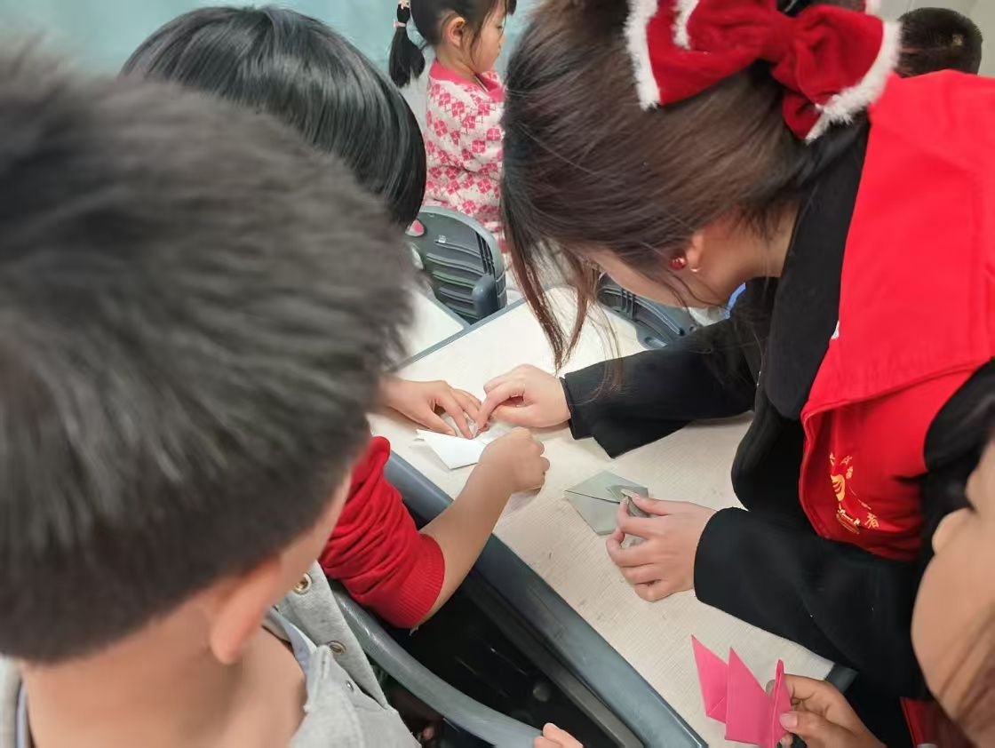 除此之外,活动还设计了丰富多彩的趣味游戏,如“雷锋知识竞答”、“团队协作接力赛”等。在“折纸递温情”环节,团员们带领小员工们一起制作手工折纸。孩子们在志愿者的指导下,折出了象征希望的纸鹤、传递友爱的花朵等手工作品。这些手工作品承载着孩子们对雷锋精神的理解和对美好未来的向往。