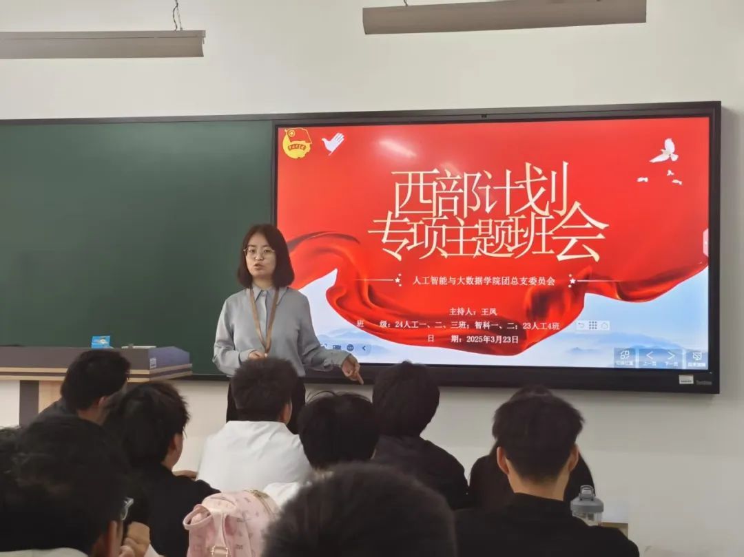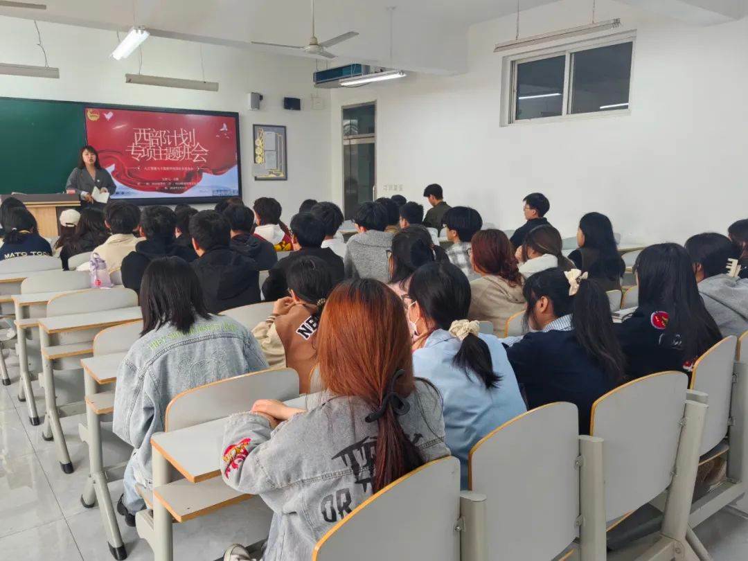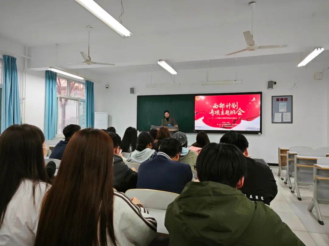 太阳成集团tyc122ccvip官网入口于2025年3月23日在线上及次教各班教室开展西部计划专项主题班会。本次班会由各班辅导员主持,大一至大四全体员工参加。由于公司大四员工均在外实习,故毕业班辅导员选择采用线上班会,在校生均是线下班会。
